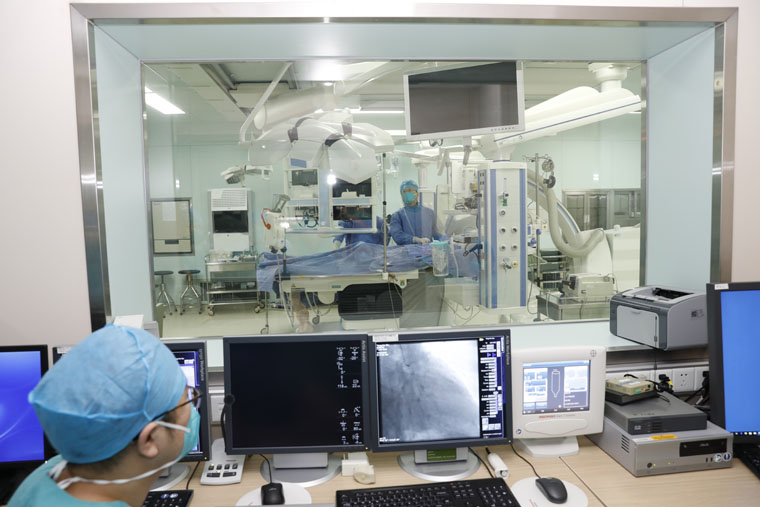 DSA手术室,全称数字减影血管造影复合手术室,又称杂交手术室,是指将DSA系统直接安装在手术室内,不仅能进行外科手术治疗,也可进行血管腔内介入操作的场所。数字一体化DSA手术室主要由手术间、控制室和机房组成。手术间内配置齐全,包含CT机、一体化及信息化手术室配套设施等,可通过集中控制屏一键控制。通过信息集成控制系统对手术室内的CT机、腔镜影像、手术灯、电外科设备、手术床等进行控制,减少误操作,提高安全性;对手术室内音视频集中管理,实现术中高清音视频的示教、切换、录制、点播等功能,实现与院内视频会议系统无缝对接;同时与院内各个系统实现无缝对接,实现各类信息的随时显示,如全院会议直播、网络会诊等。在DSA手术室,多次上演“生死时速”,诸多患者重获新生。